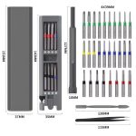Bevat 28 precisiebits, 1 schroevendraaier, een pincet en een koevoet.