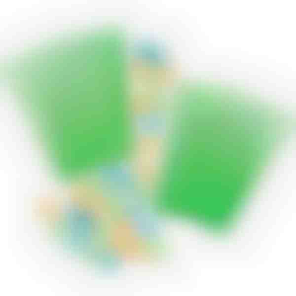 Kleur: Bal: Rood, Geel, Groen, Blauw / Buis: Groen / Doek: Groen