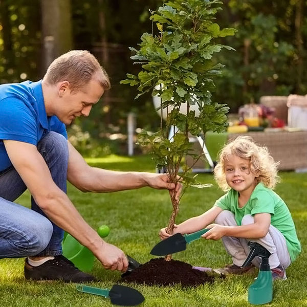 Deze tuingereedschapsset bevat alles wat je nodig hebt om nieuwe bloemen en planten te planten en je tuin in goede conditie te houden. De set bevat een wiedklauw/hark en twee plantenlepels van verschillende groottes, waardoor het gemakkelijk en handig is om alle soorten planten te planten en te onderhouden.