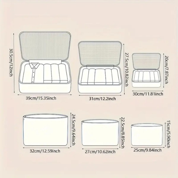 Met verschillende maten voor uiteenlopende behoeften helpen deze organizers bij het scheiden en opbergen van allerlei benodigdheden. De grote tassen passen bij kleding, schoenen en accessoires, terwijl de kleinere zakjes perfect zijn voor technische gadgets, kabels of snacks!