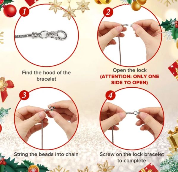 - Een kerst adventskalender met 22 bedels en 2 armbanden om twee charmante armbanden te maken.