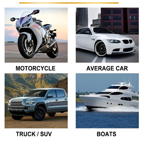 Gebruik CARCOAT op autoβs, boten, motoren, campers, ATVβs en meer. Het is veilig voor alle oppervlakken, inclusief lak, plastic en glas.