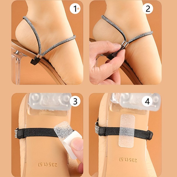 Ben je het zat om je hoge hakken steeds opnieuw te moeten verstellen? Onze verstelbare bandjes houden je schoenen stevig op hun plek, voorkomen uitglijden en zorgen voor een veilige pasvorm.