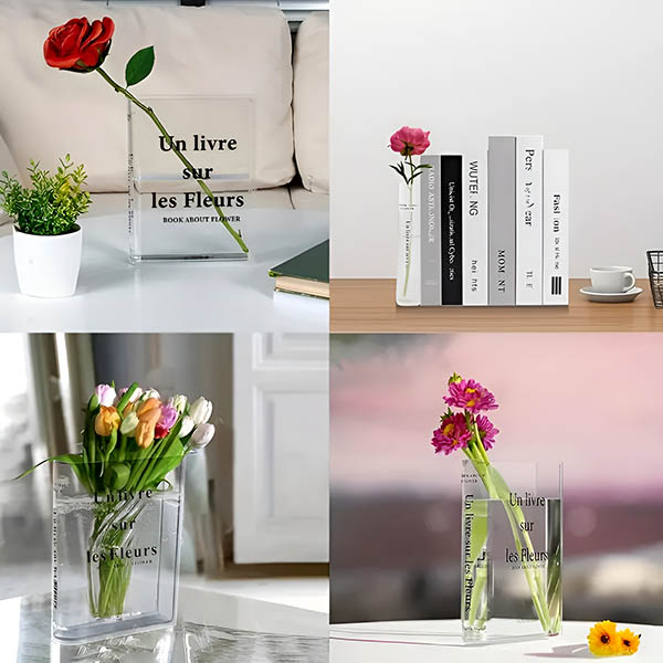 De vaas is gemaakt van 3 mm dik ABS-materiaal en bootst het uiterlijk van glas na, maar biedt tegelijkertijd verbeterde duurzaamheid en bescherming tegen kneuzingen. Dit zorgt ervoor dat je boekvormige vaas jarenlang mooi en functioneel blijft.