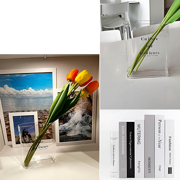 De vaas is gemaakt van 3 mm dik ABS-materiaal en bootst het uiterlijk van glas na, maar biedt tegelijkertijd verbeterde duurzaamheid en bescherming tegen kneuzingen. Dit zorgt ervoor dat je boekvormige vaas jarenlang mooi en functioneel blijft.