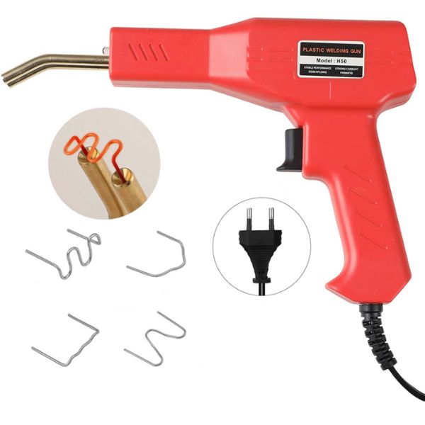 Naast het lasapparaat bevat het pakket ook tangen, een mes en 200 nietjes van verschillende grootte in een handige tas. Deze nietjes zijn duurzaam ontworpen en bestand tegen zowel hitte als water, waardoor ze een lange levensduur hebben.