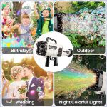 Het bellenblaaspistool kan meer dan 7000 kleurrijke bellen spuiten die elke minuut de lucht in vliegen. Zodra u de trekker overhaalt, beginnen de bellen zich in de lucht te verspreiden en licht de hemel op in duizend kleuren.