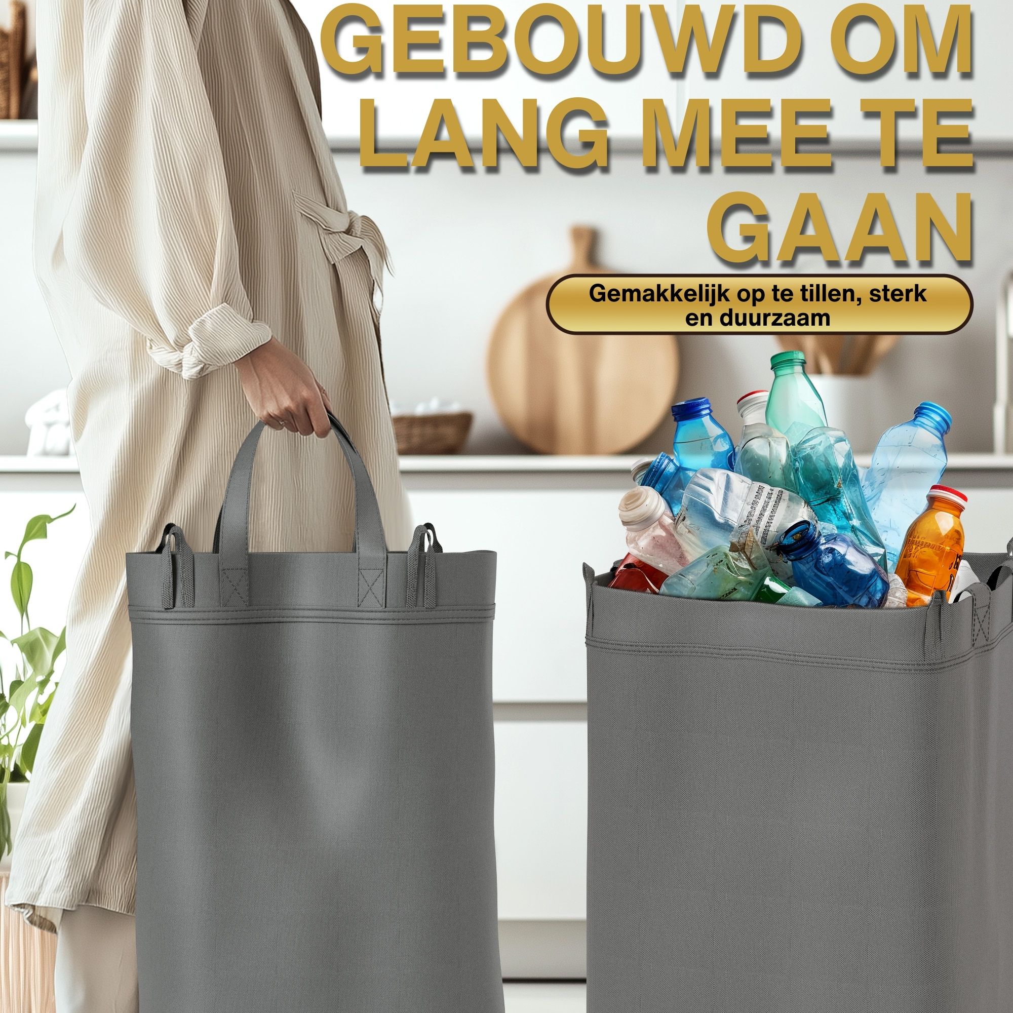 - 100L CAPACITEIT: Biedt voldoende ruimte voor grote hoeveelheden recyclebare materialen, van glas tot plastic. De binnenzak maakt tillen, schoonmaken en organiseren eenvoudig.