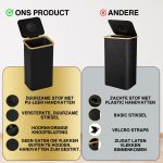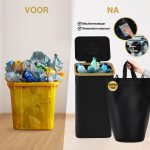 Dit model heeft versterkte naden, duurzame materialen en een elegante zwarte kleur die moeiteloos past in elke ruimte – of het nu een modern kantoor of een minimalistische keuken is. Het compacte maar ruime ontwerp maakt efficiënt recyclen mogelijk zonder te veel ruimte in te nemen.