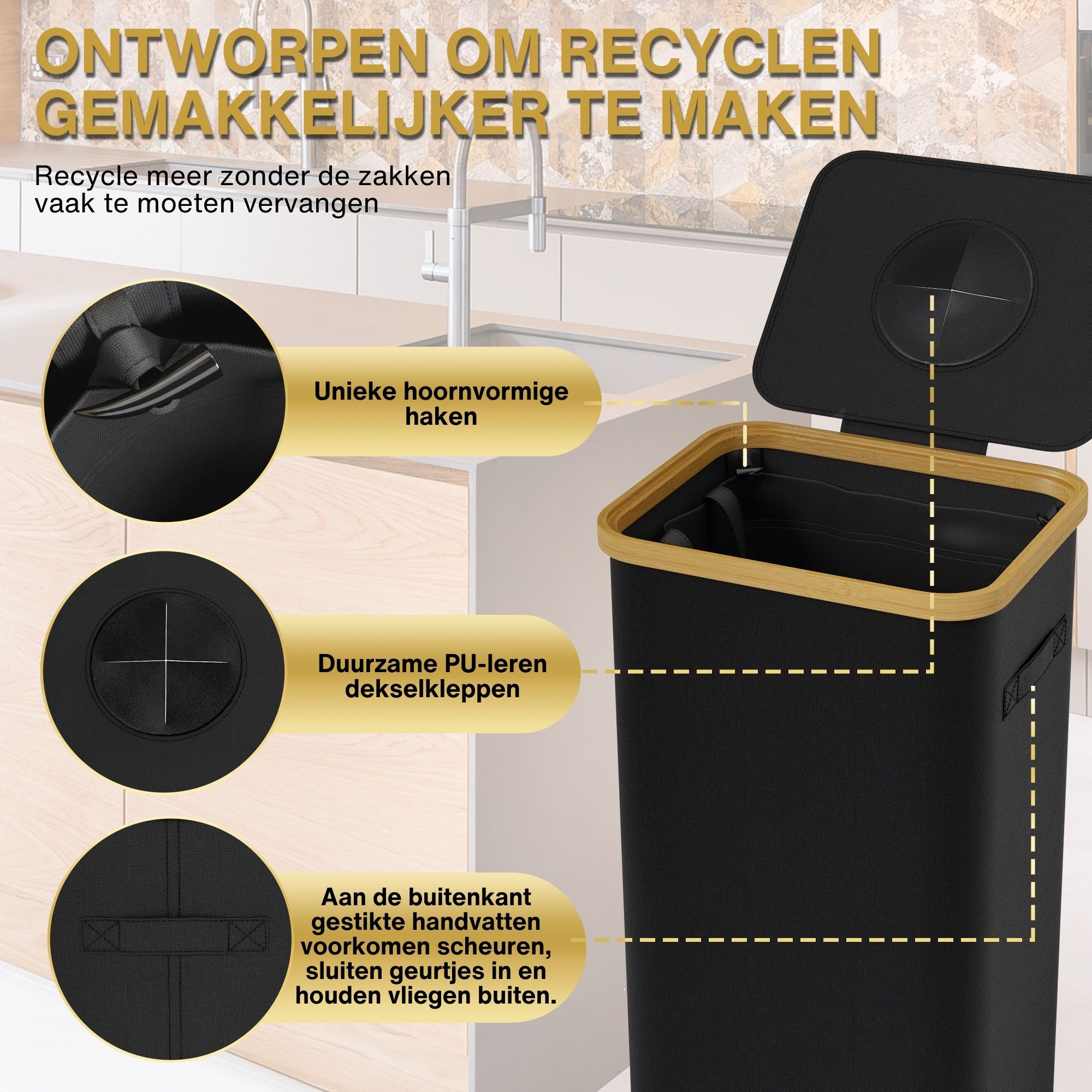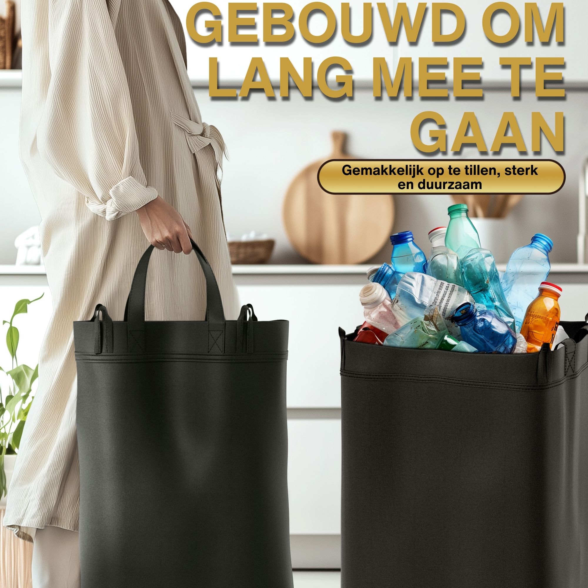 - 100L CAPACITEIT: Biedt voldoende ruimte voor grote hoeveelheden recyclebare materialen, van glas tot plastic. De binnenzak maakt tillen, schoonmaken en organiseren eenvoudig.