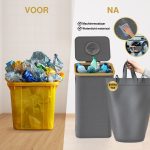 Biedt ruimte voor een grotere hoeveelheid afval en vermindert de noodzaak voor frequent legen, wat zorgt voor betere organisatie en minder overstromend afval.