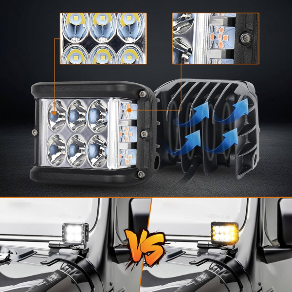 Rijden in de nacht of bij mistige omstandigheden kan uitdagend zijn. Met een krachtige 6W LED-uitgang en een kleurtemperatuur van 6000K + 3000K bieden deze lichten uitzonderlijke helderheid en verbeteren ze de zichtbaarheid, waardoor je vertrouwen en veiligheid op de weg worden vergroot.