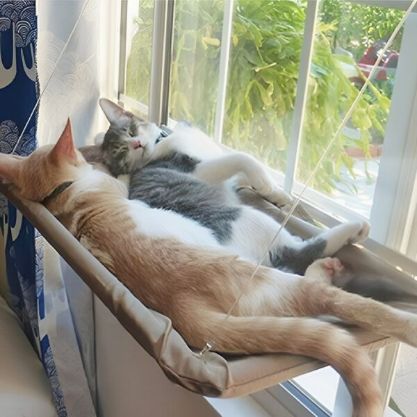 Katten houden van hoogtes, dus ze zullen gefascineerd zijn door deze hangmat. Gebruik hem echter op een lagere hoogte voor honden 🙂