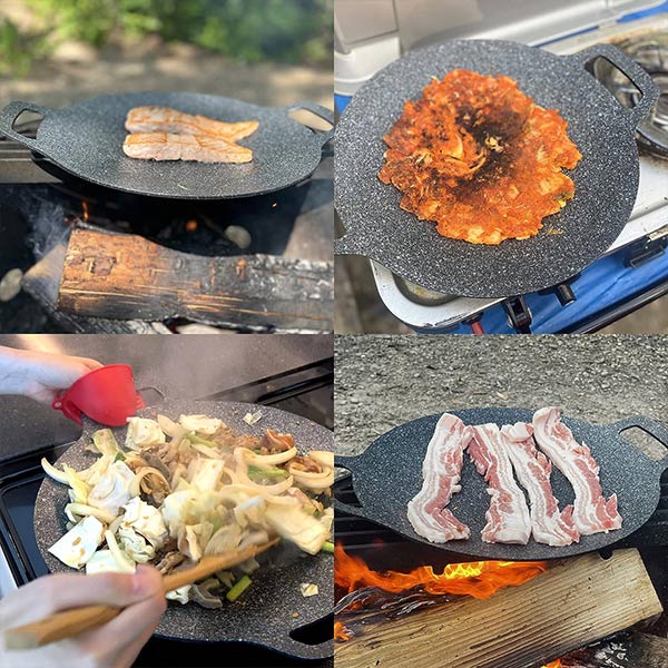 Je kunt hem gebruiken op een grill, gas- of elektrische kookplaat, inductie en zelfs in de oven. Ideaal voor het bereiden van vlees, groenten, vis, eieren en meer.