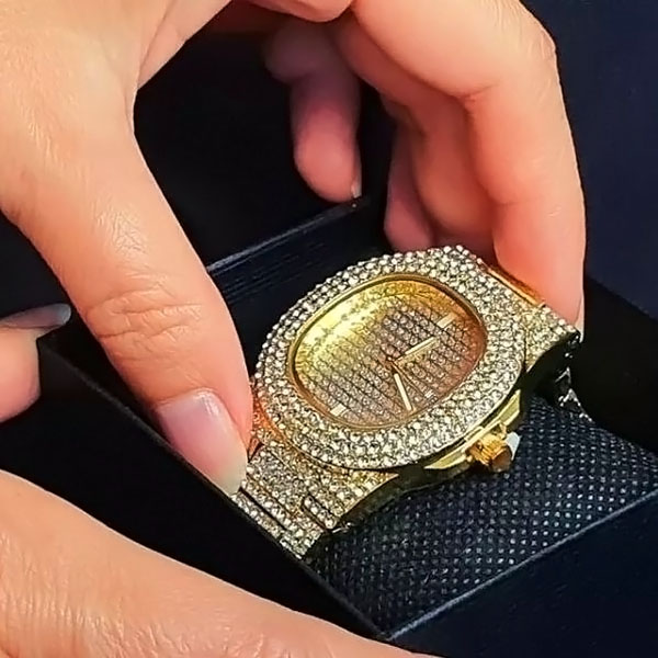 Duizenden glinsterende kristallen maken van dit horloge een echte blikvanger. Het is niet zomaar een uurwerk, het is een gedurfde uiting van luxe en elegantie.