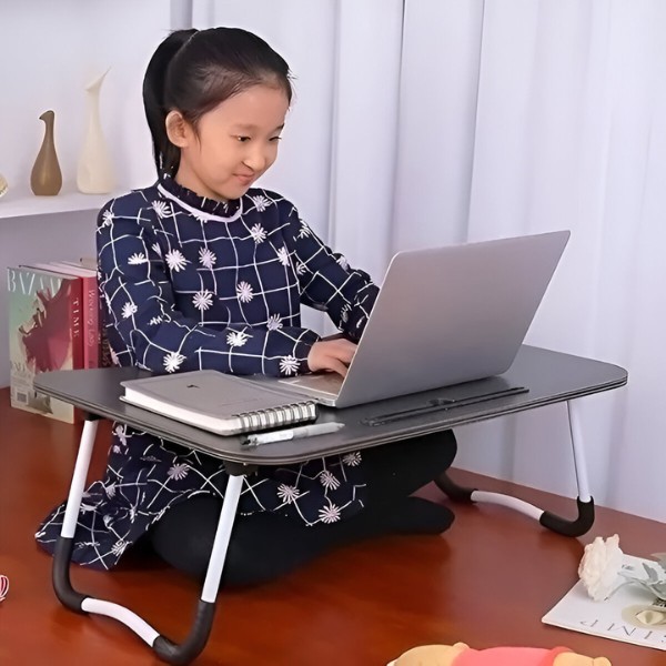 Gemaakt van hoogwaardig MDF en aluminiumlegering, is dit mini-bureau stevig en gebouwd om lang mee te gaan. Het ergonomische ontwerp zorgt voor comfort en stabiliteit. De steunhoeken van de opvouwbare standaard zijn gebogen en bedekt met rubberen hoezen om uitglijden te voorkomen, waardoor het perfect is voor laptopgebruik, muziekwerk of andere taken. De afmetingen zijn ideaal voor zowel kinderen als volwassenen.