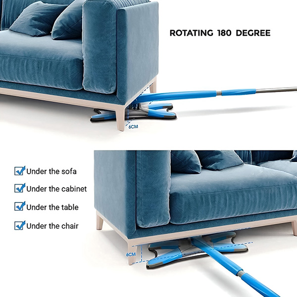 Je hoeft je rug niet te breken door zware meubels te verplaatsen om de vloer schoon te maken. De MOPEX-mop heeft een 360 graden draaibare kop, waardoor je moeiteloos rond meubelpoten, onder banken en langs plinten kunt schoonmaken. Het is ideaal voor huizen met krappe ruimtes of zwaar meubilair.