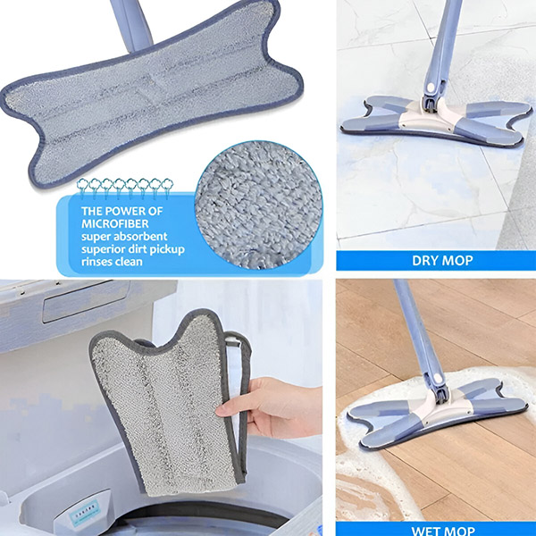 De unieke X-vormige mopkop is ontworpen om in hoeken en randen te reiken waar traditionele moppen moeite hebben. Perfect voor keukens, badkamers en entrees waar vuil zich vaak ophoopt.