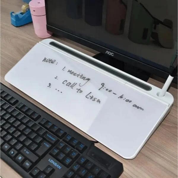 Je hebt de mogelijkheid om op het bord te schrijven, weg te vegen en te herschrijven, zodat je geen plakbriefjes en verspreide memoβs meer op tafel hoeft te leggen.