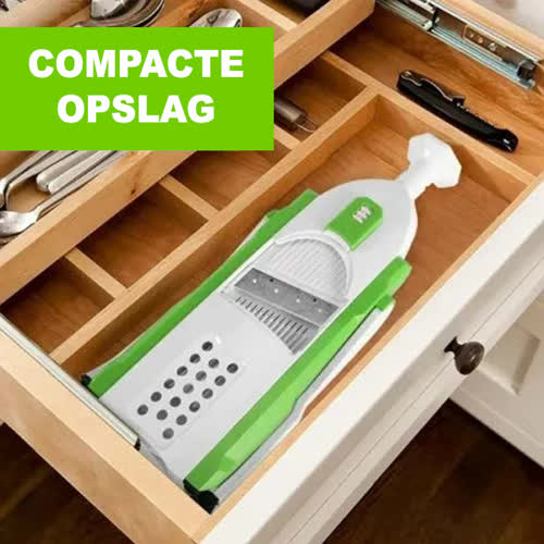 Het opvouwbare ontwerp bespaart ruimte, waardoor hij perfect is voor elke keukengrootte. Het stelt je ook in staat om snel en veilig fruit en groenten in verschillende vormen te bereiden!