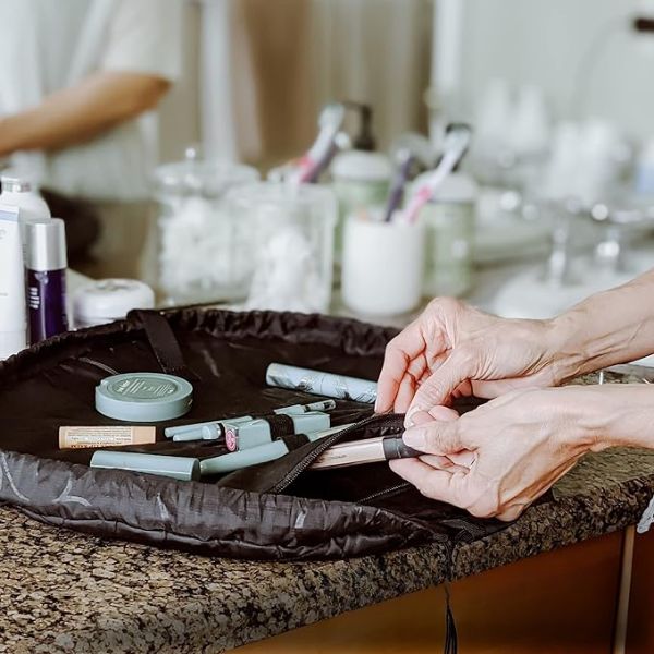 Blijf glamoureus georganiseerd met GLAMSY! Het innovatieve koordontwerp van ons tasje kan worden uitgevouwen voor gemakkelijke toegang tot al je schoonheidsbenodigdheden. Zeg maar dag tegen make-up ongelukjes en hallo tegen een moeiteloze, compacte organisatie!