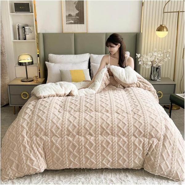 Deze deken combineert de essentiΓ«le kwaliteiten van superieur comfort: pluche, behaaglijke stof die grenzeloze warmte biedt en ademend vermogen om transpiratie te voorkomen.
