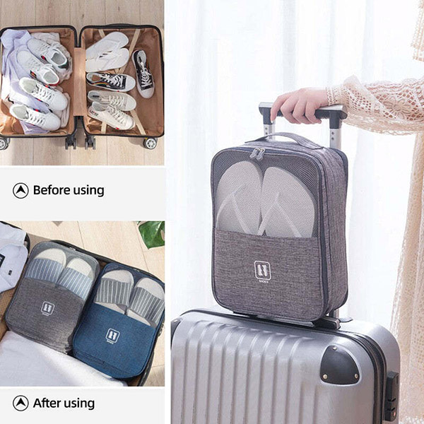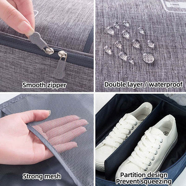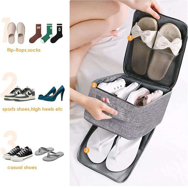 Houd je schoenen georganiseerd op reis. Met het meerlaagse ontwerp kun je je schoenen afzonderlijk opbergen, elk paar in zijn eigen vak.