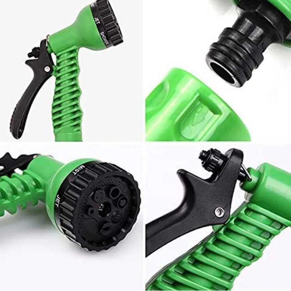 Je zult versteld staan ​​van zijn flexibiliteit: de slang kan tot drie keer zijn lengte worden uitgerekt, waardoor je zelfs de verste hoeken van je tuin of auto kunt bereiken.
