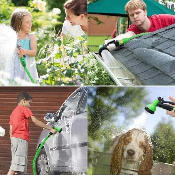 Je zult versteld staan ​​van zijn flexibiliteit: de slang kan tot drie keer zijn lengte worden uitgerekt, waardoor je zelfs de verste hoeken van je tuin of auto kunt bereiken.