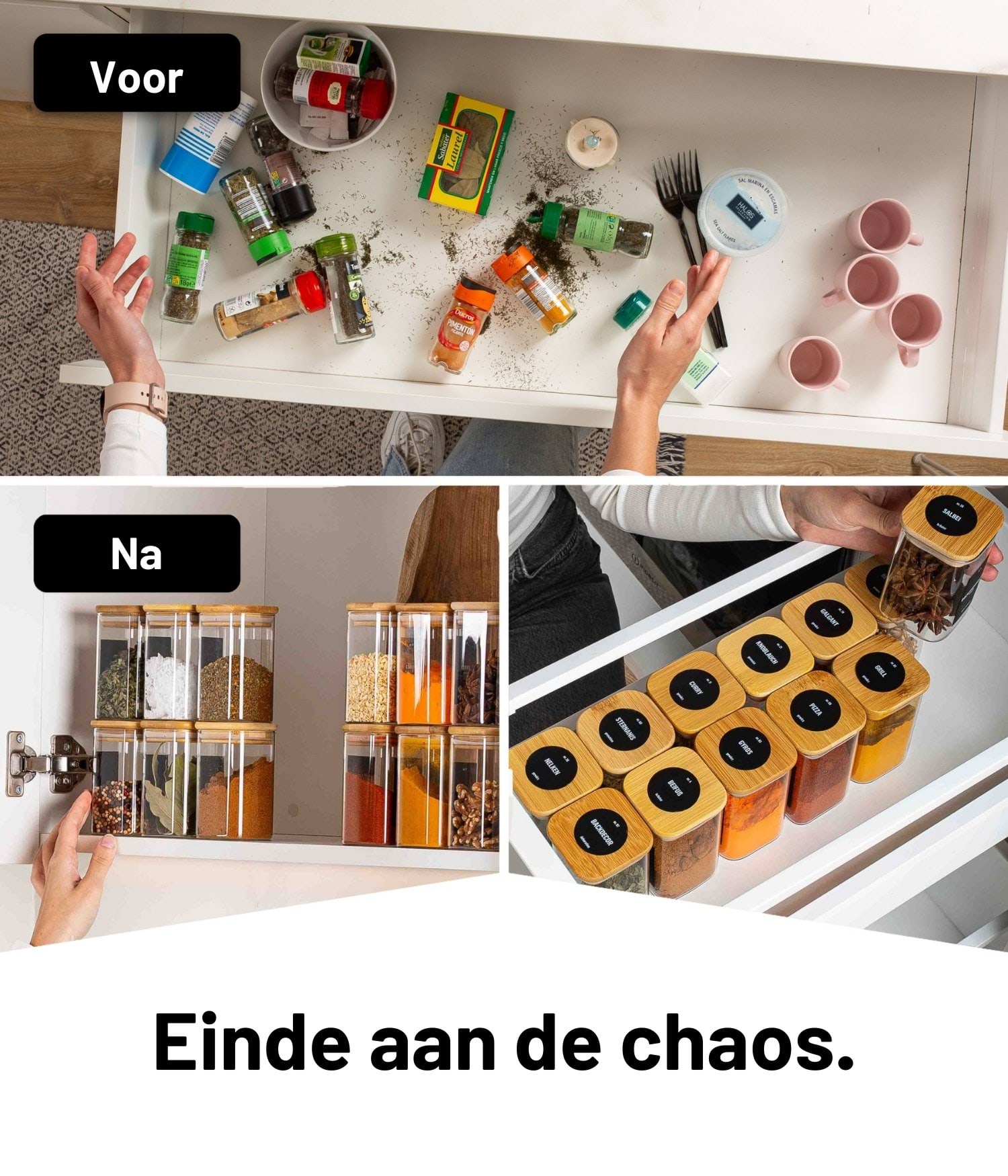 - OPTIMALE ORGANISATIE – Met onze praktische potten met bamboedeksel is je keuken altijd opgeruimd. Of je je potten nu op het aanrecht, in de kast, voorraadkast of voorraadkast bewaart, je vindt in een handomdraai wat je nodig hebt!