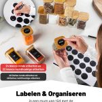 Naast de glazen potten ontvang je ook 96 etiketten in het Duits en 46 blanco etiketten die je kunt gebruiken om voorraadpotten, kastdeuren of kruidenrekjes te markeren met de bijgeleverde krijtstift. De etiketten kunnen altijd worden weggeveegd en opnieuw worden beschreven.
