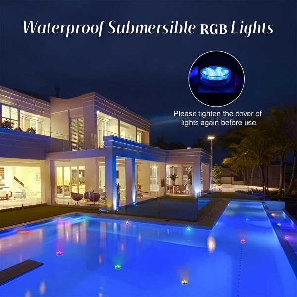 Geen stekkers, geen vonken! Verfraai de sfeer van elk aquarium, waterreservoir of ijsemmer met gemak. Deze mini-aquariumlampjes met levendige kleuren verfraaien je zwembad, aquarium, vaas of elk ander decor op elegante wijze. Of je nu een feestje geeft of geniet van een rustige avond, deze veelzijdige RGB-lampjes zullen je omgeving direct opfleuren.
