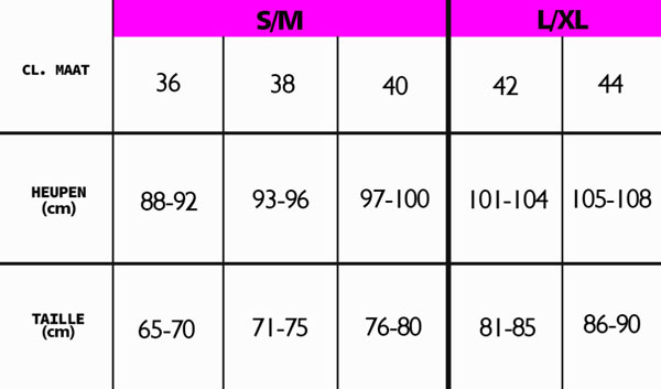 - Maat: S/M (60-73 kg), L/XL (74-95 kg)