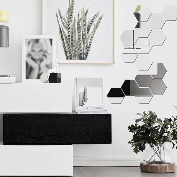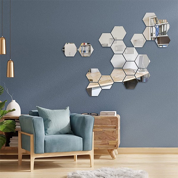 De zelfklevende zeshoekige spiegelstickers zijn een decoratieve toevoeging die het uiterlijk van je huis direct verbetert. Dit is een betaalbare en elegante manier om je muren te decoreren.