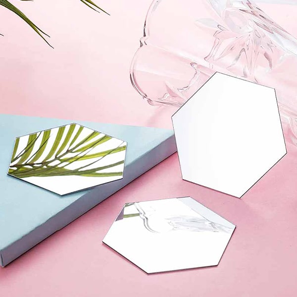 Deze stickers zijn gemaakt van eersteklas reflecterend materiaal dat er net zo uitziet als echte spiegels. Met hun zeshoekige vorm geeft elke sticker moeiteloos een eigentijdse flair aan je muren.
