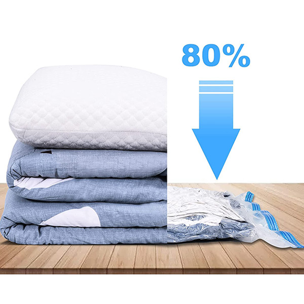 Te weinig opslagruimte? Bespaar tot 80% ruimte met onze vacuümopslagzakken! Gewoon inpakken – afsluiten – en de lucht eruit zuigen om omvangrijke items zoals kleding, dekens en beddengoed te verkleinen. Meer ruimte, minder rommel!