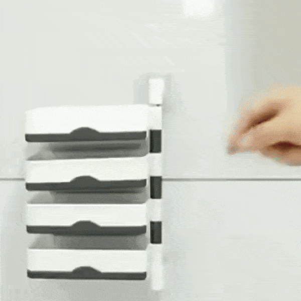 ๐งผ Opvouwbaar, aan de muur gemonteerd rek met 4 niveaus voor georganiseerde opslag.